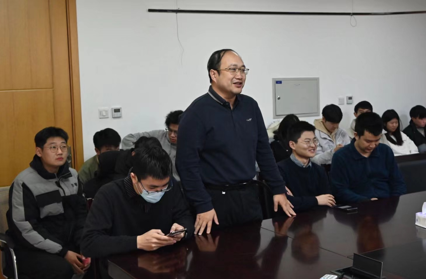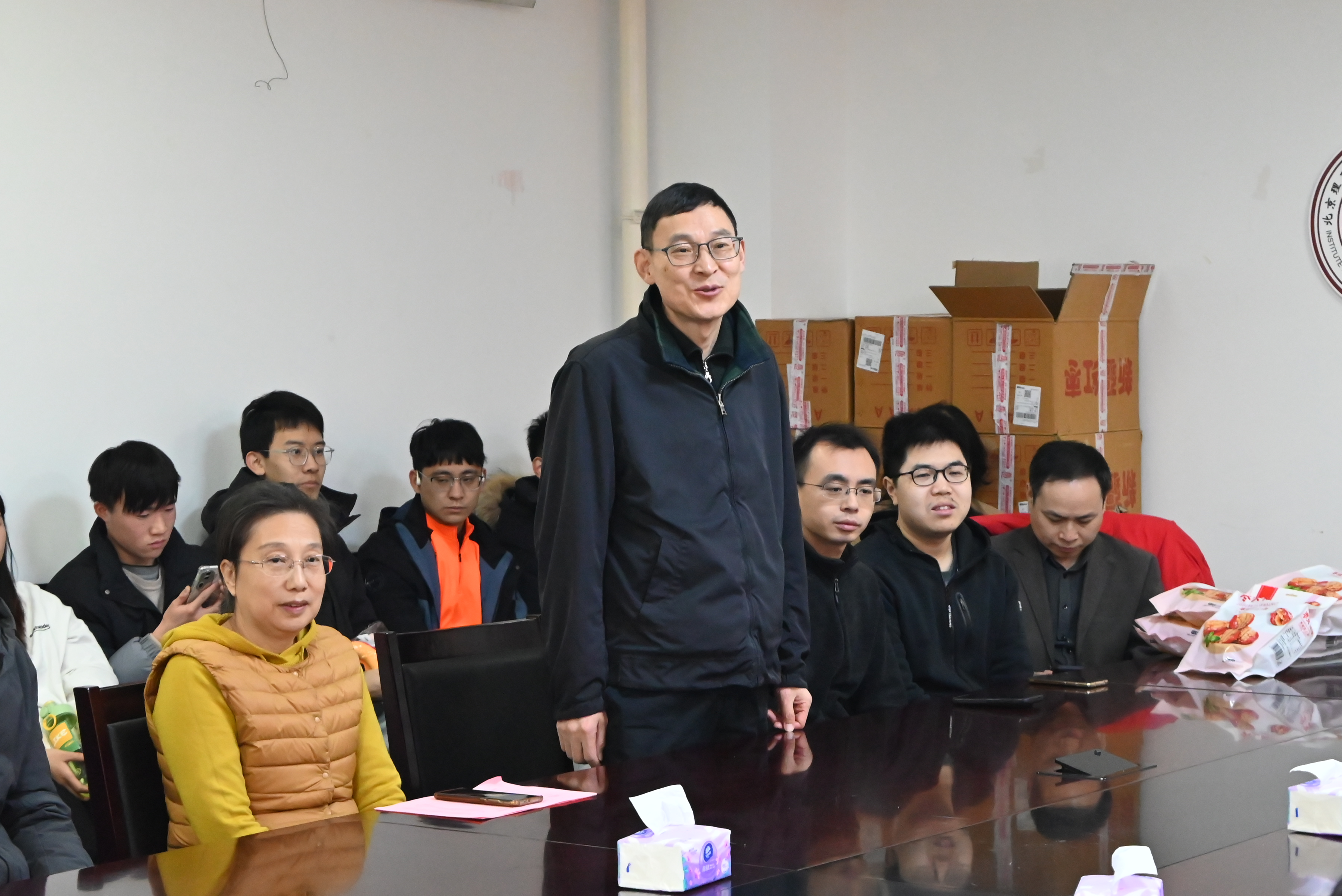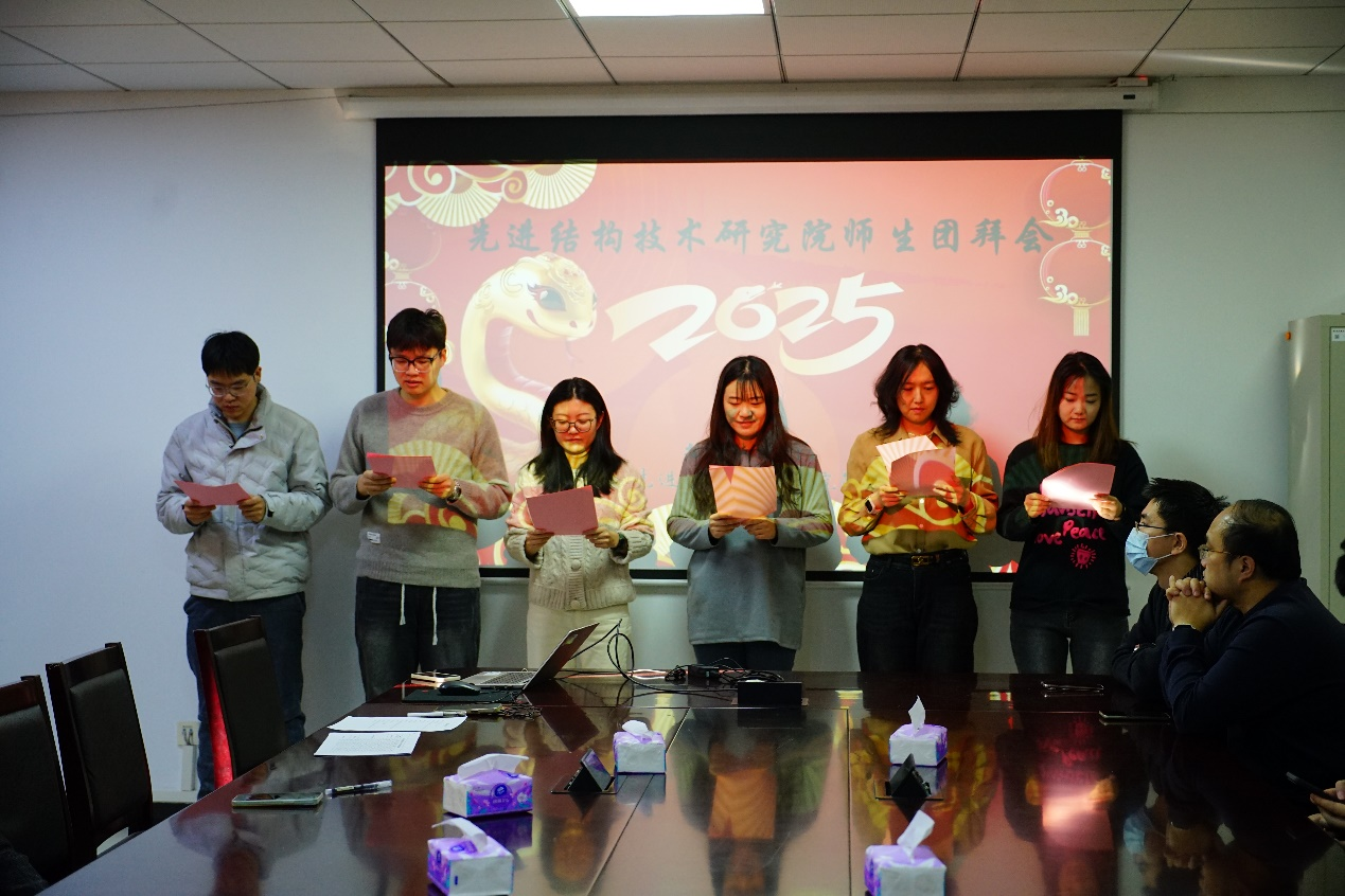 随后,师生代表用诗朗诵表达了对研究院的真挚情感与对新春的美好祝愿。大家回顾了过去一年研究院的发展建设,深刻感受到了集体的温暖与力量。会议最后,研究院班子成员代表研究院向仍坚守岗位的师生们进行了新春慰问。