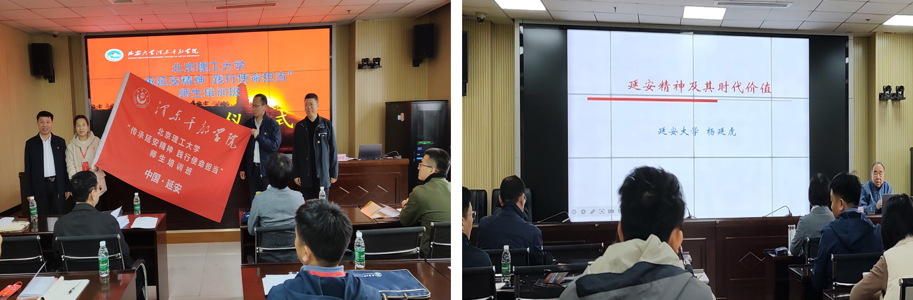 “延安,是中国革命的出发点,孕育出了伟大的延安精神。延安精神是我们党的宝贵精神财富,具备浓厚的时代特征和永恒的精神魅力,在新时代,更要传承与发扬延安精神。”开班仪式上,延安大学泽东干部学院院长杜红荣介绍了延安大学和泽东干部学院的历史和基本情况,希望参训学员能够在这次学习中感悟延安精神。延安大学杨延虎教授作了《延安精神及其时代价值》专题报告,深入浅出、实事求是地介绍了延安精神的内涵。报告让学员们系统、全面地学习了延安精神的精髓,共同感悟了党在峥嵘岁月里孕育的光辉成就。yl88858永利中国机关党委书记李汉军到会并做开班动员,他以传承“延安根、军工魂、领军人”为目标,向学员们提出了期盼,希望大家在这次培训中学习党发展的光辉历史,感受延安的历史文化,传承伟大的延安精神,深刻领悟北理工精神和文化;珍惜此次宝贵的培训机会,将所学所悟理解转化,应用到自己的学习工作当中,为学校“双一流”建设做出新的更大贡献。