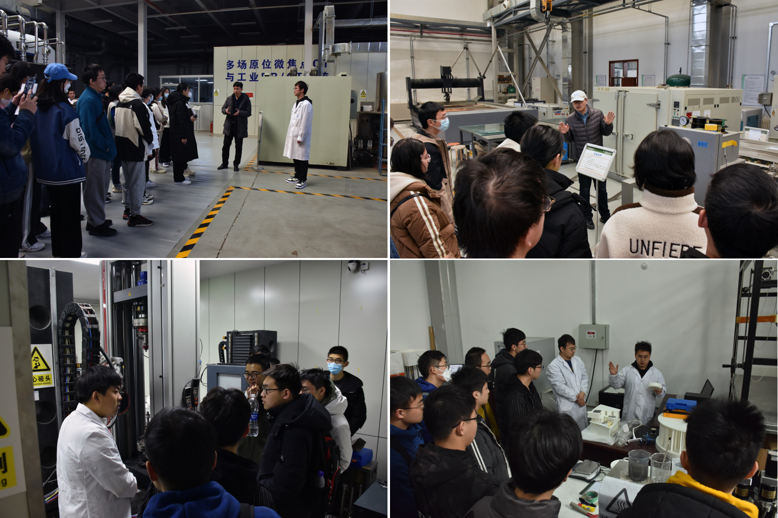 随后,在副教授赵天等师生的带领下,同学们参观了实验室,深入了解了复合材料制备设备、陶瓷/金属/聚合物3D打印设备、实验测试与检测设备、增材制造设备等多种设备的用途,近距离体验了双源双探工业DR/CT成像系统。