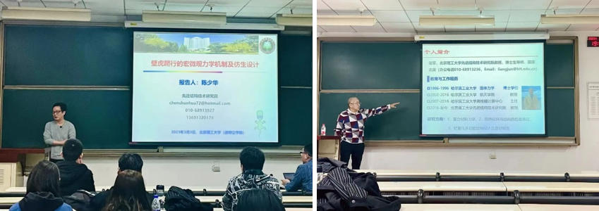3月3日,研究院教授、博士生导师、国家杰出青年基金获得者陈少华和梁军来到特立书院,先后开展了以《壁虎爬行的宏微观力学机制与仿生应用》和《先进复合材料与结构的应用与发展》为主题的学术讲座,依托壁虎爬行特性、热防护材料烧蚀机理等实例,深入浅出地介绍了力学、新型复合材料与结构的原理及应用,将具象化事物与抽象化理念相融合、专业知识与实践应用相结合,全方位展示了研究院的学科特点和研究领域,增强了同学们的专业认知,拓展了科研新思路。