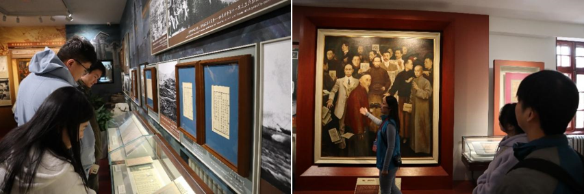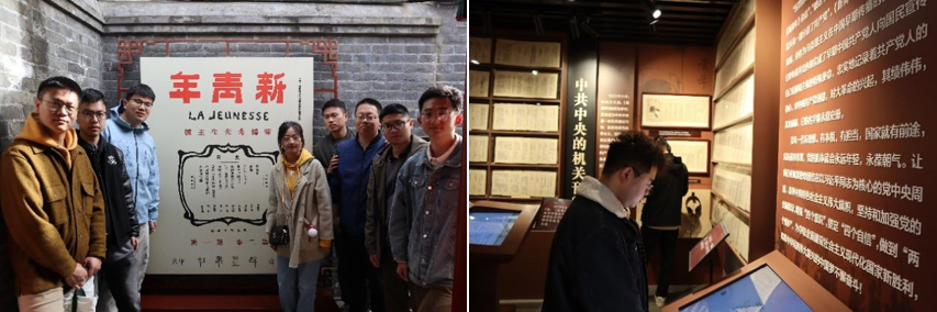 来到《新青年》编辑部旧址,陈独秀、李大钊等人曾在此进行了思想的碰撞和融合,以笔为戎。师生一行观看了旧址内的珍贵历史文物、图片和史料,感触颇深:一代人有一代人的长征,一代人有一代人的使命,站在思想巨人的肩膀上,百年之后的今天,是新的征程。理想永存、信念常在,是我们党永葆青春的显著标识,心怀理想、守正创新,是我们新青年应当具备的时代品质。