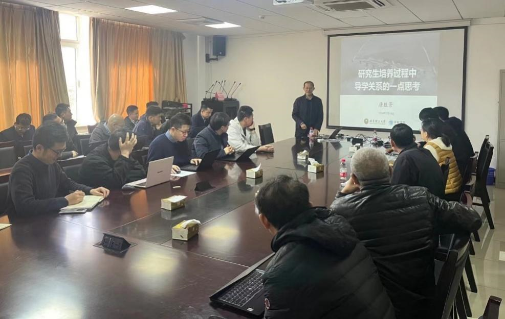 唐教授围绕导学关系的含义、形成类型、影响因素及对研究生培养过程中导学关系的思考及感悟等方面,全方位阐述了在研究生全过程培养中建立良好导学关系的重要意义及经验举措。他指出,研究生培养过程中,导师是主导方,学生是主体实施者,双方应相辅相成、协同共进。导师要坚持立德树人根本任务,严慈相济,开展培养工作要有抓手、有指导艺术,关心关爱学生发展,了解学生的差异化,引智润心。青年导师更要紧跟学校政策指引,站位高远、视野宏阔,不断提升自身素养,给予学生前瞻性的学术启蒙,以学术造诣开启学生智慧之门,以人格魅力启迪学生心灵。与会导师受益匪浅,围绕研究生培养过程中遇到的问题展开深入讨论。