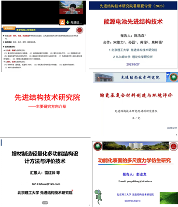 陈浩森、康骁、王一光、雷红帅、彭志龙五位教授以学生兴趣为出发点,融合实际应用与专业基础,分别从能源电池先进结构技术、先进结构技术研究进展与应用、陶瓷基复合材料制备及其环境评价、增材制造轻量化多功能结构设计方法与评价技术、功能化表面的多尺度力学仿生研究及应用等方向全方位展示了我院的学科特点及研究领域,使得营员们对未来的科研发展有了更为明确的目标。讲座结束后,雷红帅和曹志强两位老师以云直播的形式带领营员们参观了良乡实验室,深入介绍了我院的实验设备与科研平台。