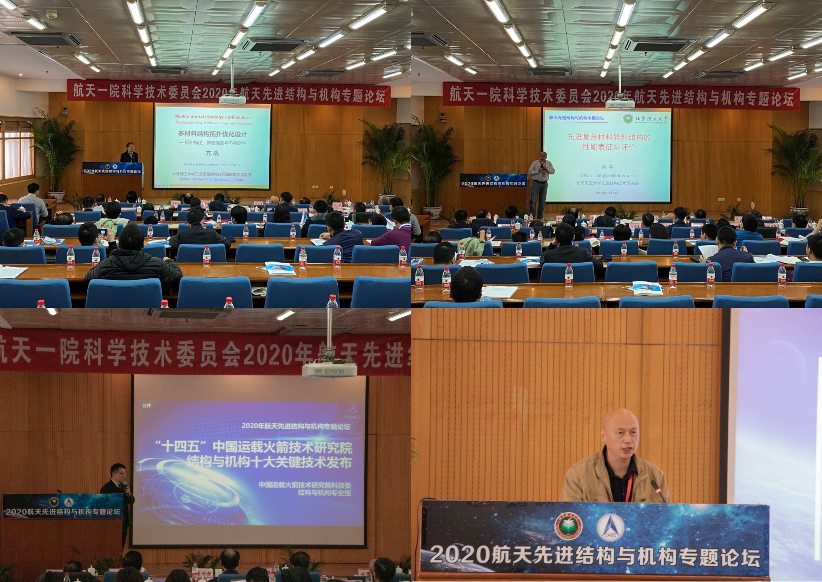 2020年11月14日,由yl8858永利集团和航天一院科学技术委员会联合主办的“2020年航天先进结构与机构专题论坛”在yl88858永利中国国际交流中心顺利召开。本次论坛邀请了中科院院士方岱宁教授、大连理工大学亢战教授、yl88858永利中国梁军教授等30余位学界代表,以及航天一院科技委副主任黄振勇研究员、长征七号系列运载火箭总设计师范瑞祥研究员、某固体运载火箭总设计师董利强研究员、航天一院能力建设部总工程师熊焕研究员等60余位工程界代表,围绕“航天运载器轻量化结构设计与制造”开展研讨。会议由航天一院一部蒋先旺副主任主持。