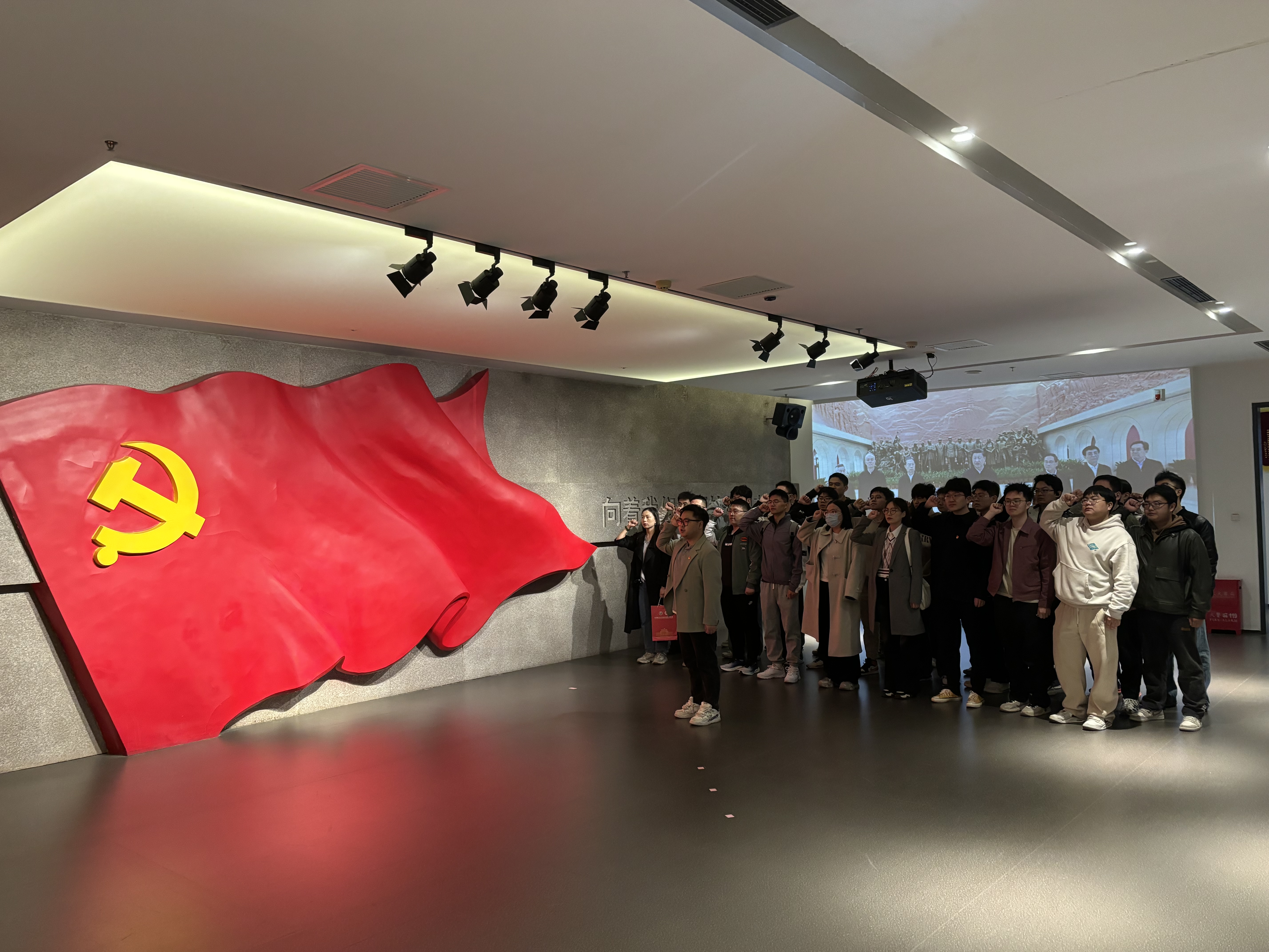 参观结束后,师生党员们在基地内重温了入党誓词。面对党旗,全体党员庄严宣誓,表达了对党的忠诚以及为党的事业奋斗终身的坚定信念。随后,学生代表分享了参观心得,纷纷表示,此次参观学习是一次深刻的思想洗礼,今后将以更高的标准严格要求自己,扎实开展科研学习,发挥先锋模范作用。