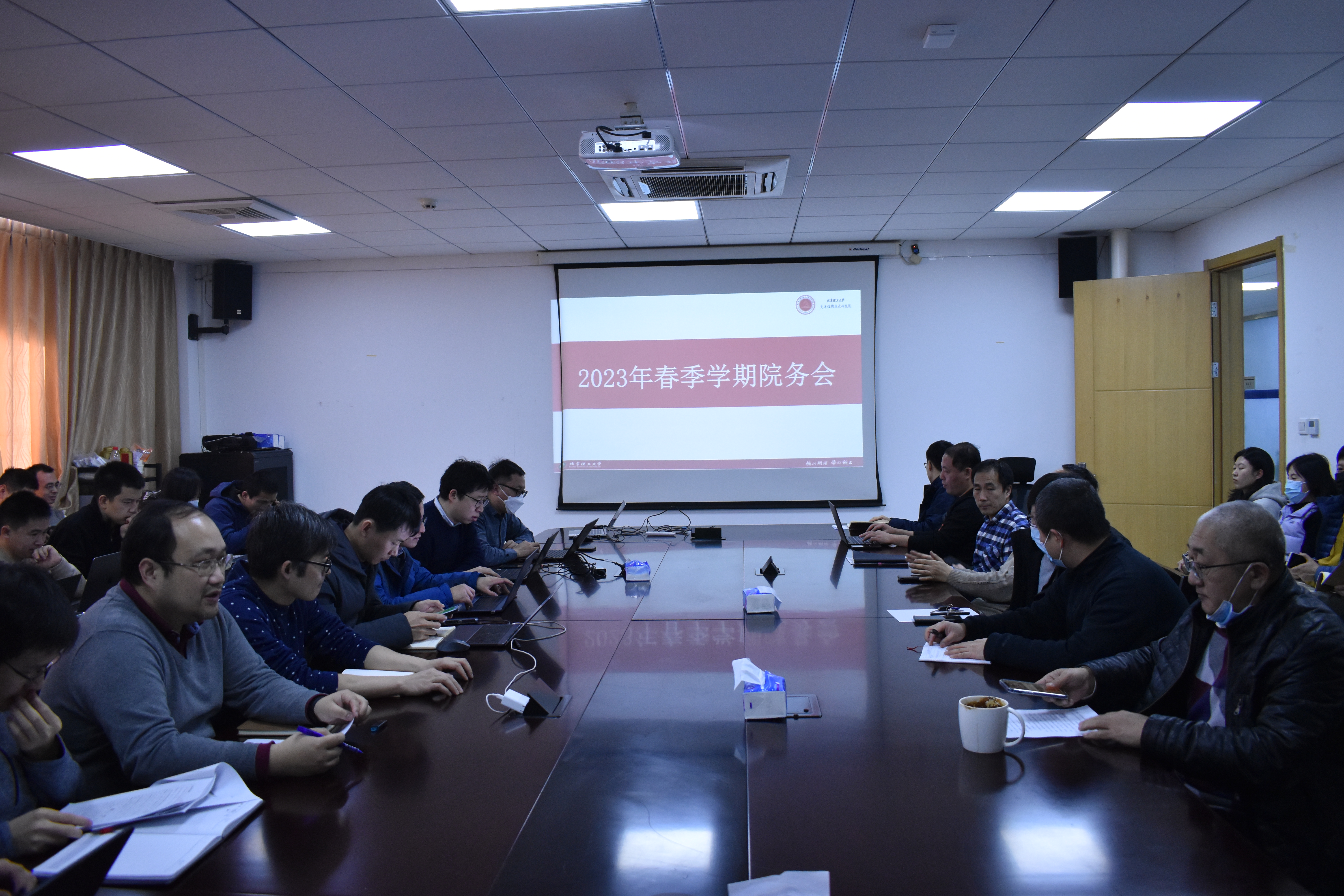 会议号召全院教职工以此次院务会为契机,认真总结,提升经验,创新发展。要持续深入学习宣传贯彻习近平新时代中国特色社会主义思想和党的二十大精神,在思想理论武装上抓深入,进一步强化服务本领、拓展服务面向,展现时代担当。不折不扣把党中央决策部署、习近平总书记关于教育、科技、人才等工作的重要论述和学校党委要求贯彻落实好,将其作为贯穿全年工作的主线,做好全面学习、全面把握和全面落实,提升支撑学校发展的能力和水平,助力学校“双一流”建设。