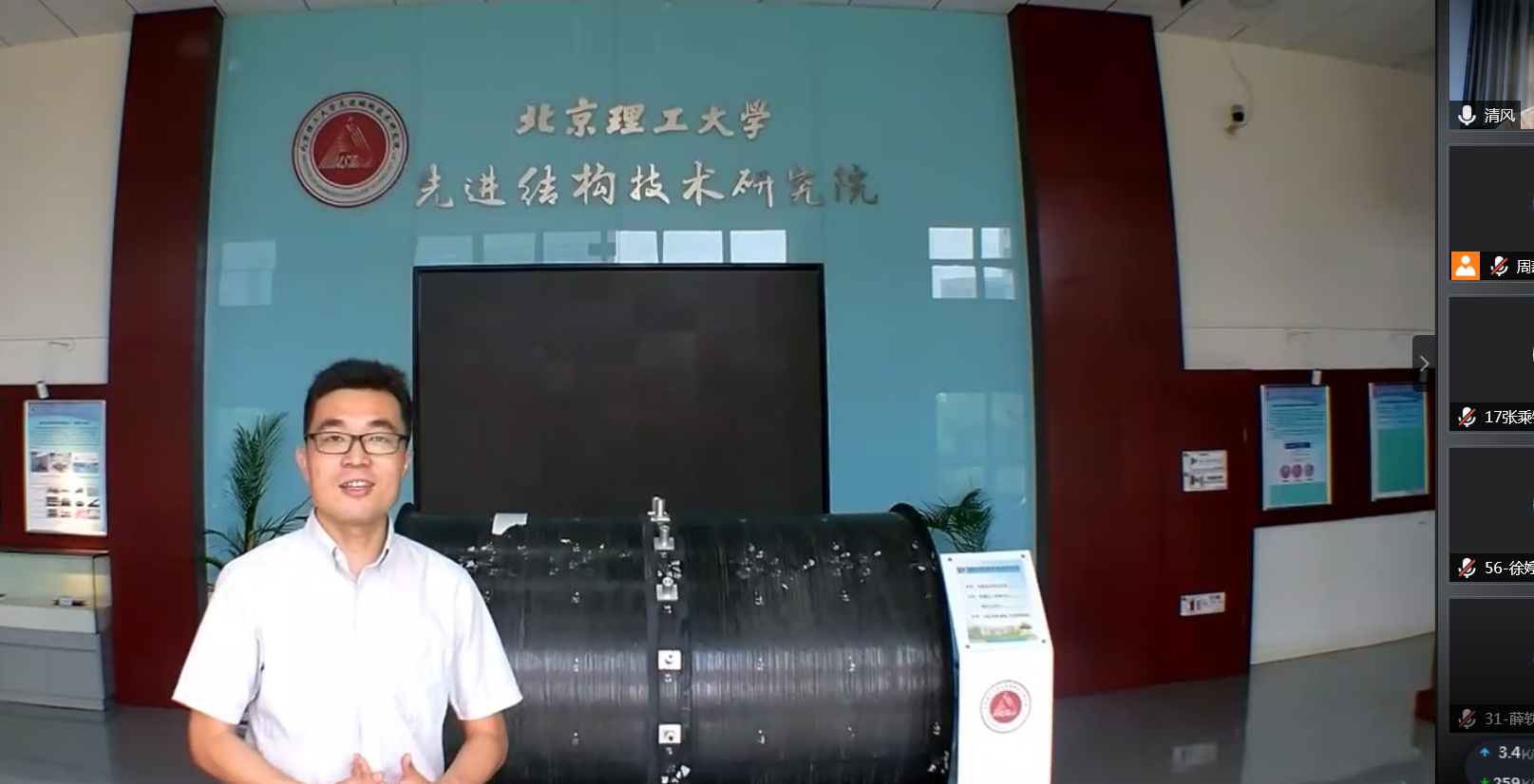 陈浩森、彭志龙、张中伟、葛敬冉、陶然五位老师,以学生兴趣为出发点,融合实际应用与专业基础,分别从锂电新能源汽车、仿生材料力学、热防护材料及结构、材料与结构力学、智能材料及结构等方向全方位展示了我院的学科特点及研究领域,使得营员们对未来的科研发展有了更为明确的目标。同时,雷红帅和曹志强两位老师以云直播的形式带领营员们参观了良乡实验室,深入介绍了我院的实验设备与科研平台。