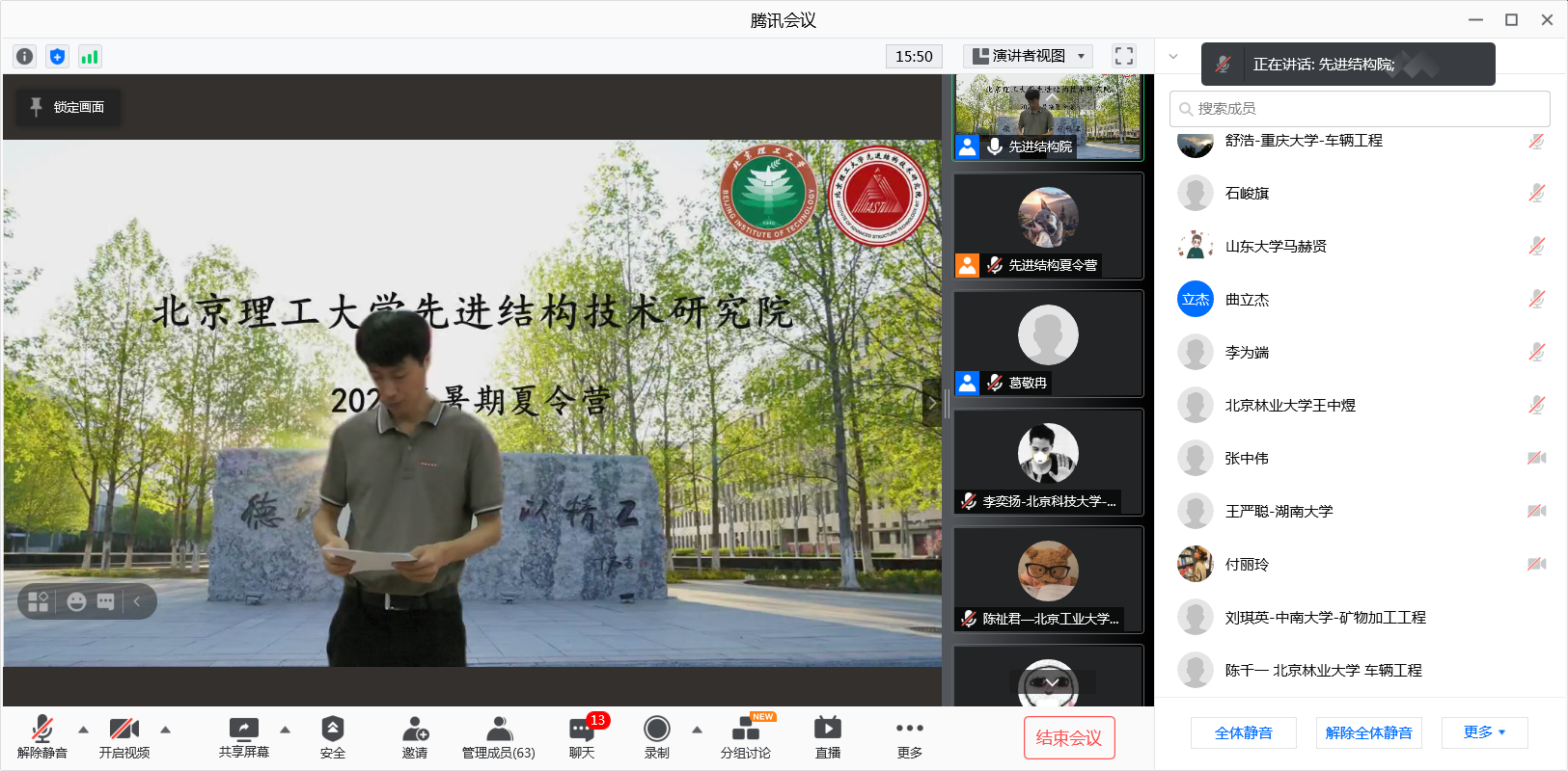 本次夏令营以“营理而来,云聚先进结构”为主题,以让营员“云上乘兴而来,云下满载而归”为目标,融合了“五个一”的云活动,以期塑造一个不一样的“北理工先进结构院云印象”。本次活动共吸引全国50余所高校100多名本科生踊跃报名,经学院初选、研究生院审核,最终确定62名优秀大学生参加本次夏令营。